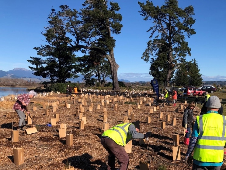 For the centenary itself, Rotarians turned out in spades, also bringing their spades for a mammoth planting drive! ‘We had 50 members from both Nelson West and Richmond Rotary on the day,’ says Kevin. We’re pretty happy with that result as you can imagine, and extremely grateful to TET who went out of their way to make it happen. They provided the plants and the direction, and the tea and biscuits also helped!’