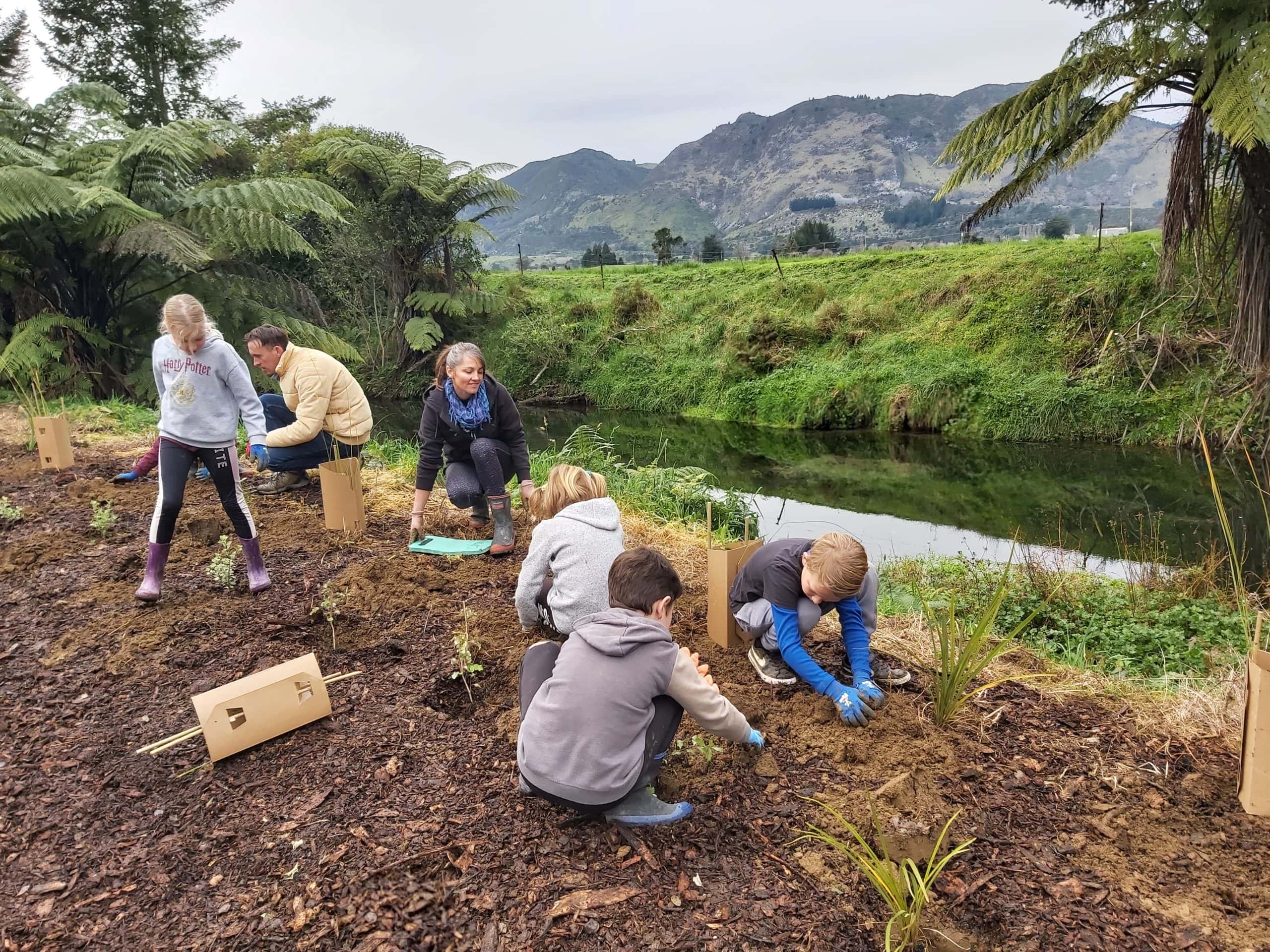 Over the last five years the crack willow has been poisoned in the whole catchment. There is ongoing work to remove any regrowth. Tributaries are having wetlands reinstated and the streams have been restored to a more natural, meandering flow. Many landowners have moved fences back and riparian planted thousands of new trees and native plants on their farms.