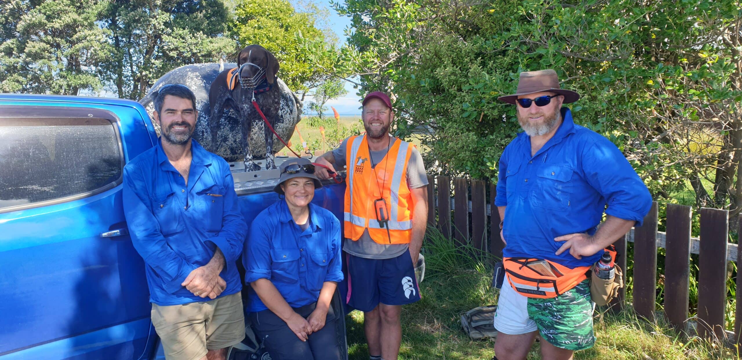 The project has now deployed: 209 AT220 self-resetting traps, 161 DOC200s, 480 bait stations. Currently, this network covers about 500 hectares at the far end of Onetahua/Farewell Spit, running at full tilt to target possums and rats. A special addition to the team is Argos, a trained pest control dog working alongside Project Lead Corey Mosen.