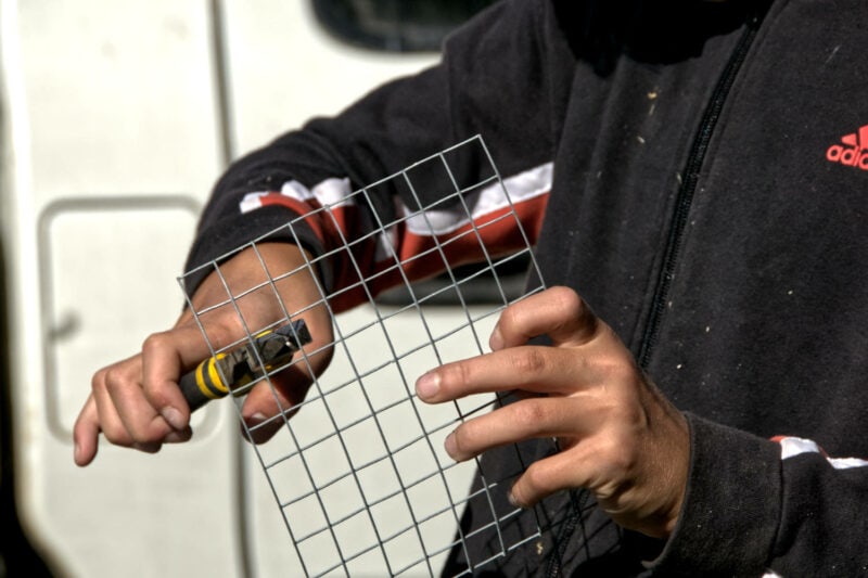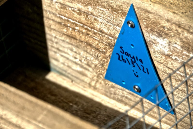 Then it’s full-on construction. Firstly, they name their blue triangles and screw them to what will be one of their box’s inside walls. Next, they build the boxes themselves. Finally, they cut wire mesh and secure it to the trap with staples. They all support and help each other at every step. It’s wonderful to witness.
